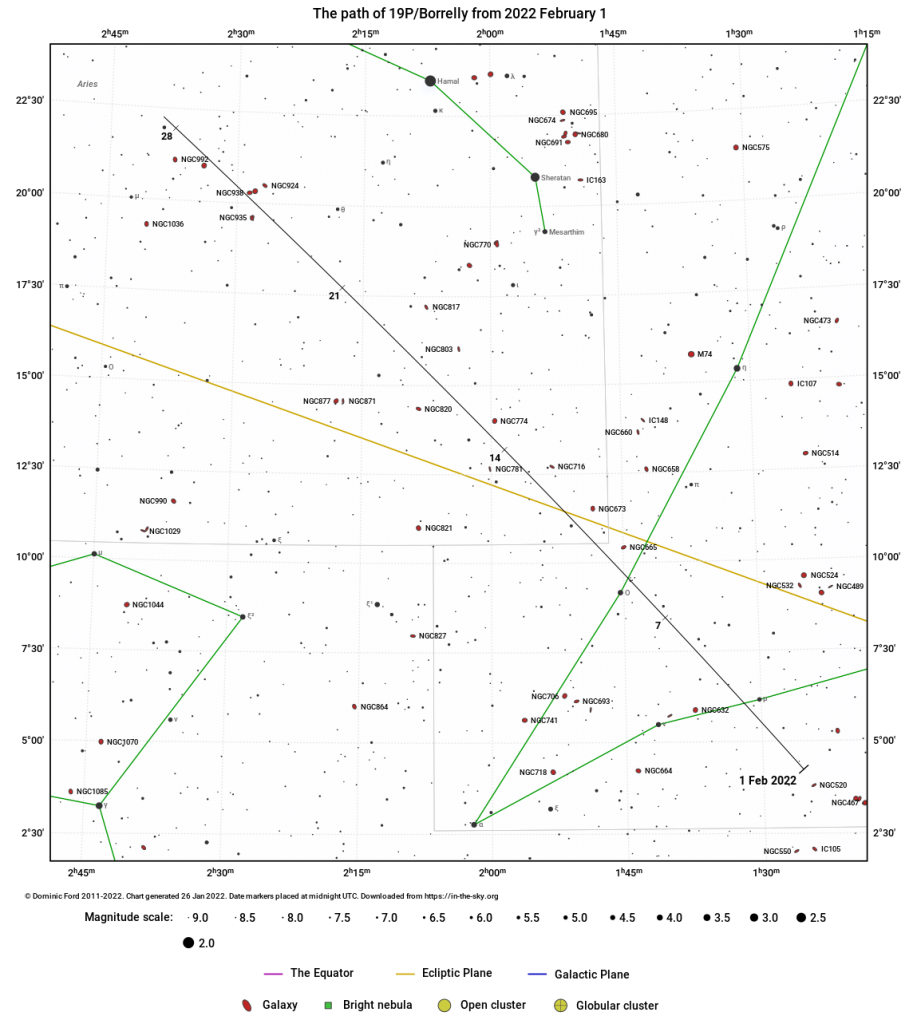 - Február 28-án és március 1-jén az 5,5 magnitúdós nű Arietistől északra suhan majd el.