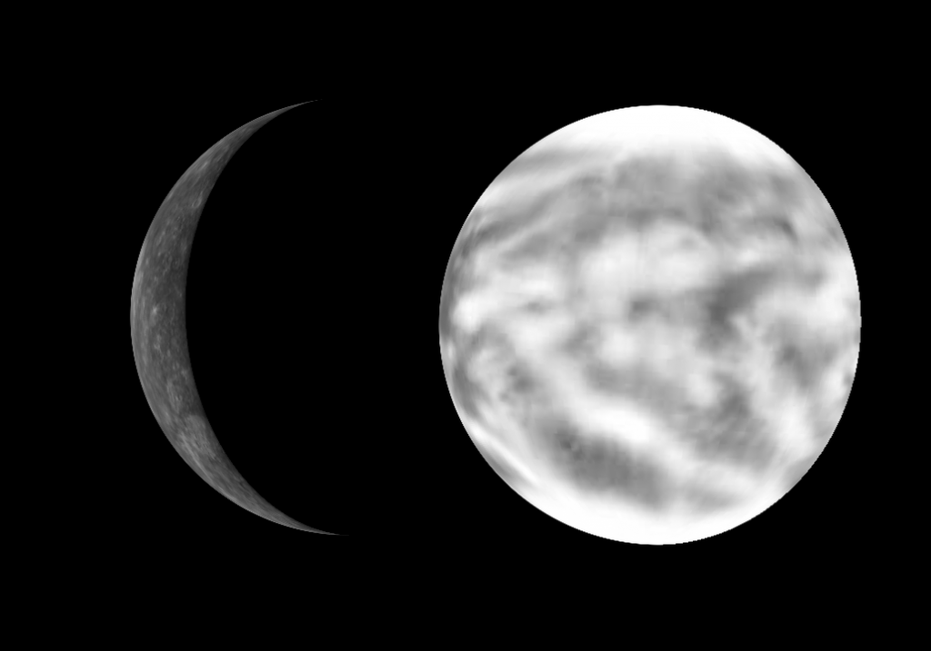 Tehát: A Merkúr most nagyobb, mint a Vénusz! A Merkúr egy leheletvékony sarló, míg a Vénusz egy bumfordi golyó!