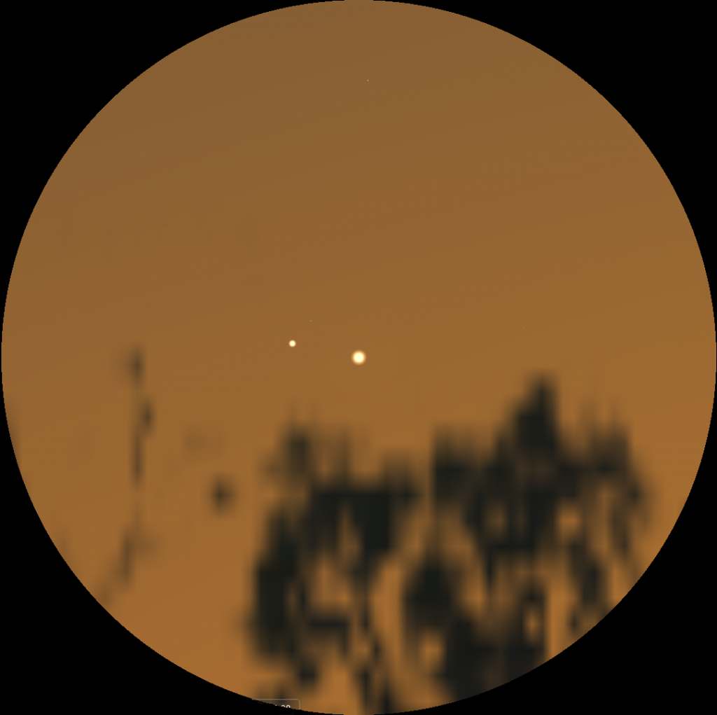A különös páros táncának megfigyeléséhez nagyobb távcsőre lesz szükségünk, és legalább 150-200x-os nagyításra. Ezzel kiválóan fog látszani a halvány és vékony Merkúr sarlója, talán felszíni alakzatainak nyomán sötétebb-világosabb szakaszokat is láthatunk rajta.