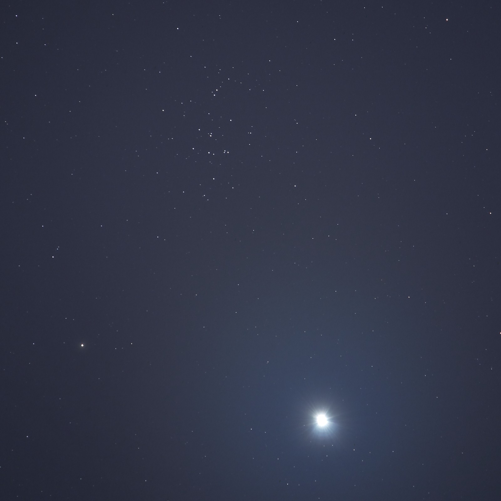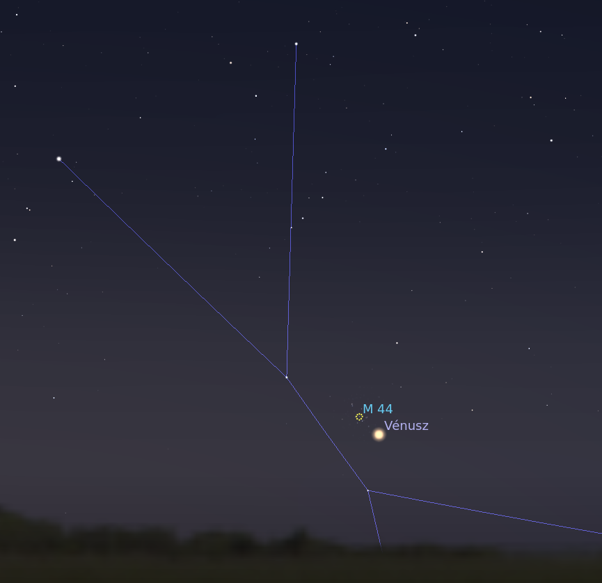 Méltó módon köszönhetünk el a Vénusztól a mostani együttállással – augusztus 18-án hajnalban áthalad a két csacsi (Asellus Borealis és Australis) által közrefogott Praesepe, avagy Jászol (vagy Méhkas) halmazon. A bolygó a halmaz középpontjától 38 ívpercre dél felé, a csoportosulás peremén halad át.