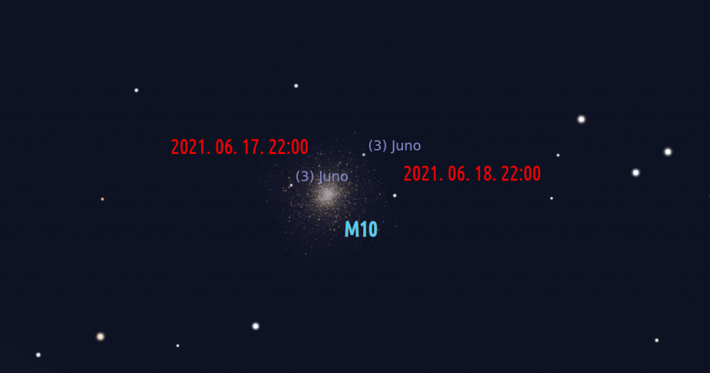 📸 Borítóképen: A Juno útja az M10-en kersztül június 17-én és 18-án. Forrás: Stellarium