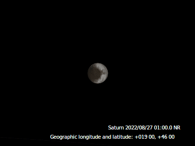 A Iapetus útja 2022. 08. 27. 3 és 24 óra között (magyar idő szerint), 3 perces lépésközzel. Az animáción az időpont UT-ben látható, tehát ehhez 2 órát hozzá kell adni. Amikor a hold helyén egy üres karikát látunk, akkor teljes árnyékban van. Megfigyelhető a hirtelen felfényesedés is a bolygó túloldalán, amikor a Cassini-résen átszűrődő fény világítja meg.