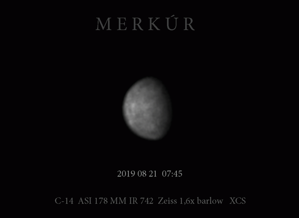 A Merkúr fázisai 2019 augusztusából Csabai István látványos, saját felvételekből álló animációján. A legnagyobb fázis itt 83%-os, ennél nagyobb fázist nem is igazán lelhetünk fel az archívumban, ugyanis nagy megvilágítottság esetén mindig nagyon közel helyezkedik el a Merkúr a Naphoz. Forrás: www.eszlelesek.mcse.hu