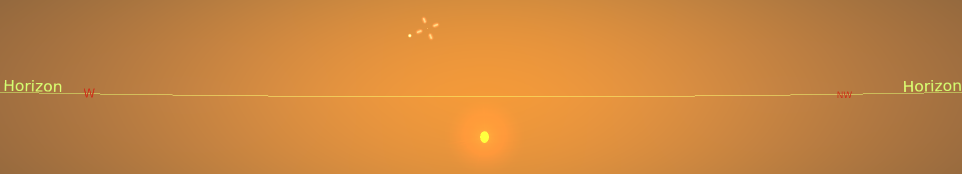 És még most is, amikor egy különösen kedvező láthatósága lesz, napnyugta után negyven perccel, mire szabad szemmel feltűnik, alig 12 fokkal lesz csak a nyugati látóhatár fölött.