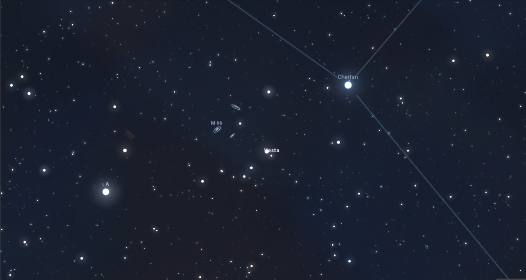 Mivel ez az esemény kiváló alkalmat jelent arra, hogy valaki elvégezze első kisbolygóészlelését, ezért elsősorban egy kezdőknek szóló észlelési programot mutatok most be. Az első lépés a csillagkörnyezet, jelen esetben a 73 Leo azonosítása, mely alapján aztán majd észleljük a Vestát.
