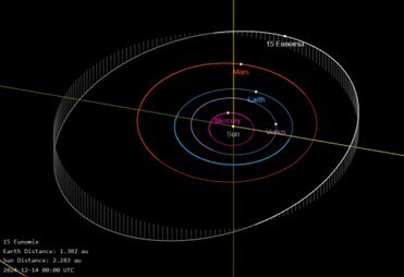December 14-én elvileg különösen jó alkalom bizonyul majd az Eunomia megfigyelésére, ugyanis oppozícióban, vagyis szembenállásban lesz majd a kisbolygó pontosan 22:32-kor. Ez azt jelenti, hogy a Földről nézve éppen a Nap átellenes oldalára kerül. Mivel nagyjából ekkor van a legközelebb a Földhöz a pályája során, így ekkor látszik a legfényesebbnek is, 8,1 magnitúdós lesz a fényessége. Ekkor van általában a legjobb láthatósága egy kisbolygónak, így érdemes ilyenkor az égre pillantani és aszteroidát észlelni. Mivel oppozíciókor az Eunomia a napkelte idején nyugszik, az éjszaka nagy részében láthatóvá az égen, különösen éjfél környékén, amikor a legmagasabban van. Ezen az estén az Eunomia a Szekeres csillagképben lesz majd megfigyelhető. Kedvezőtlen körülmény viszont, hogy éppen együtt fog állni a teleholddal, tőle 8,1 fokra látható majd tőle, így nem lesz könnyű megtalálni az égbolton a Hold erős fénye miatt.