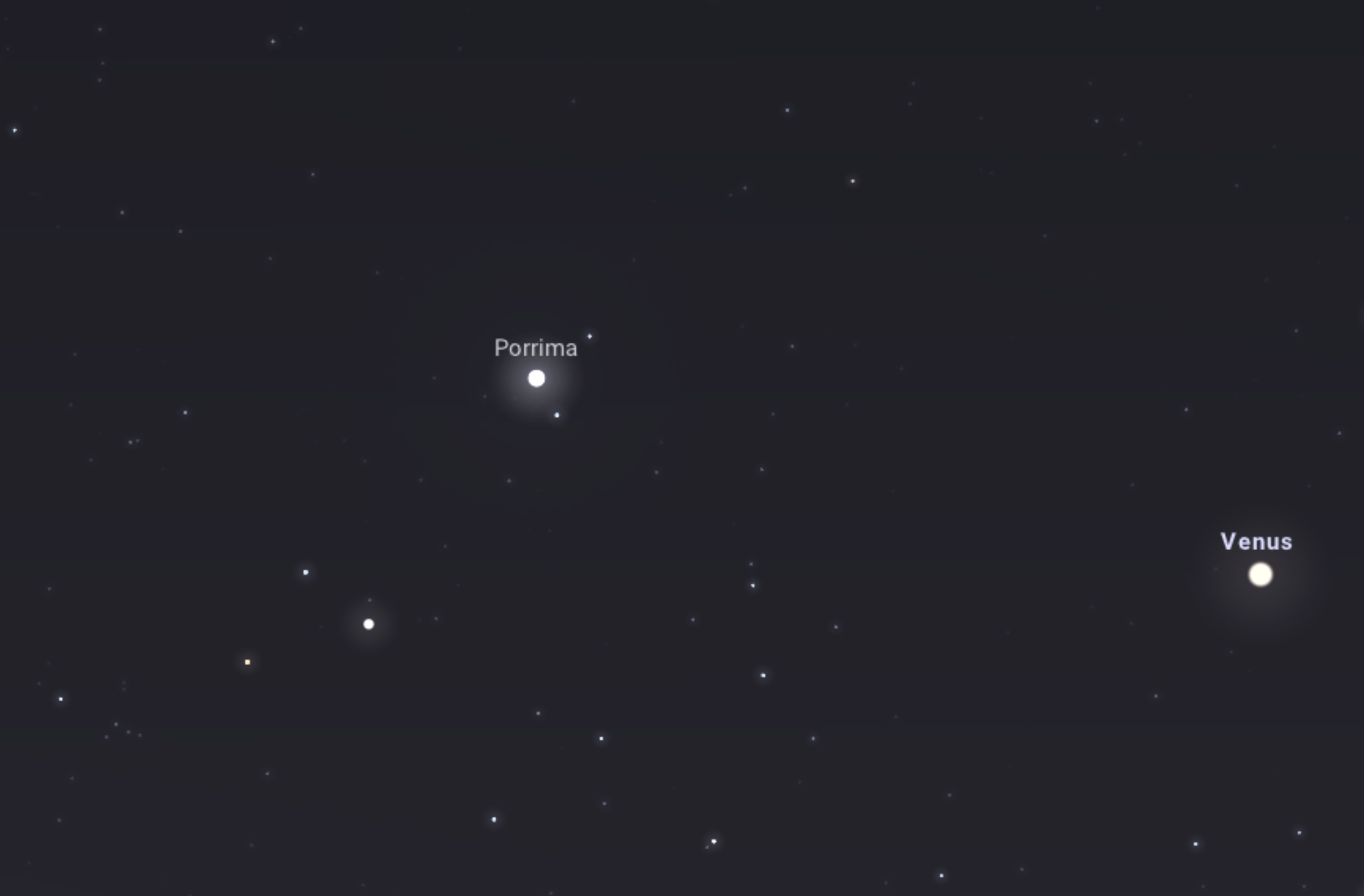 A Szűz csillagkép egyik legfényesebb csillaga, a Porrima és Naprendszerünk legfényesebb bolygója, a Vénusz egymás mellett látszanak. A csillag látszó fényessége 2,7 magnitúdó, ezért szabad szemmel is könnyedén látható. A mellette ragyogó Vénusz azonban –3,9 magnitúdós fényességével elnyomja a csillagot.