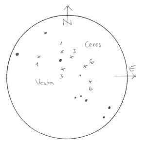Hajnali 2 órától már érdemes elkezdeni a megfigyelést, a galaxishoz pirkadatig folyamatosan közeledik majd a kisbolygó. Ha eléggé szemfülesek vagyunk, óráról órára észrevehetjük a Vesta elmozdulását!