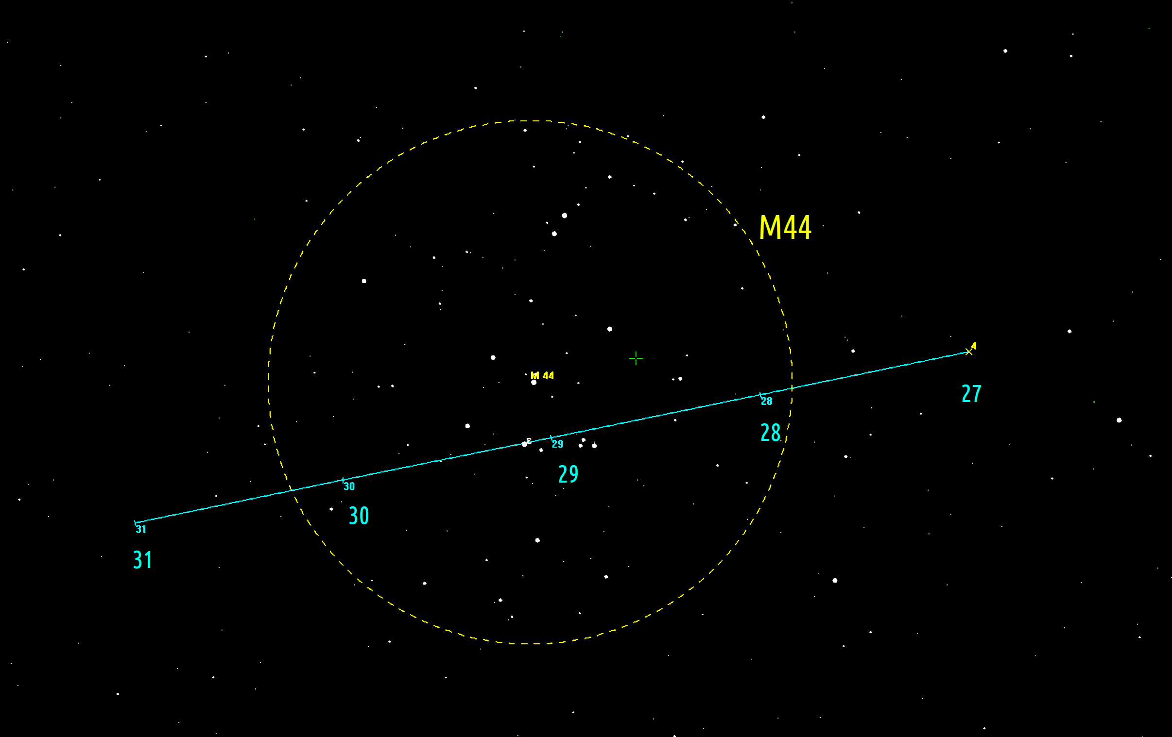 A Vesta kisbolygó ugyanis keresztben átszeli a jól ismert Praesepe, azaz a Jászol- vagy Méhkas-halmazt a hajnali égbolton!