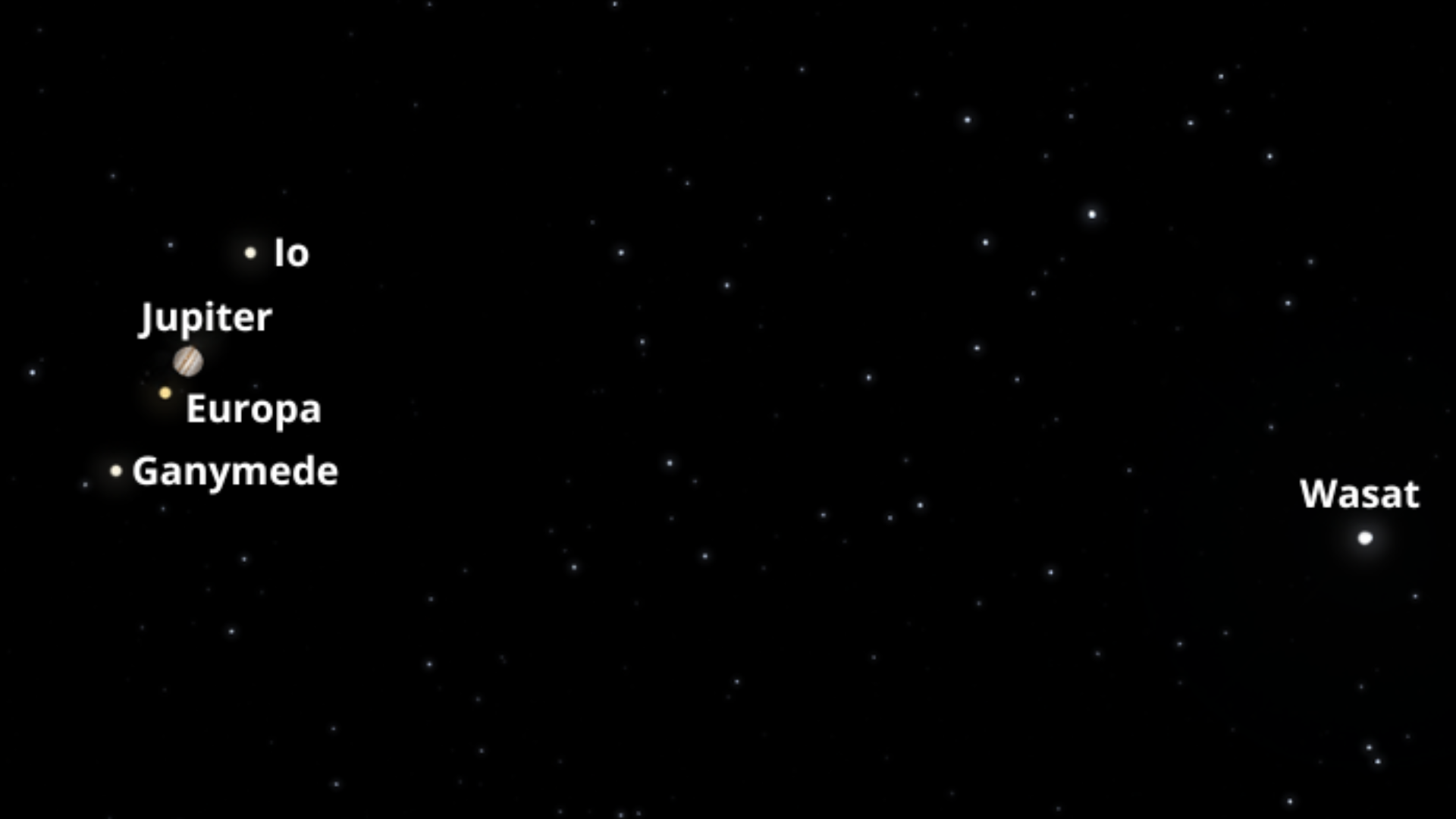 Megfigyelés: a Jupiter bolygó és a Wasat nevű csillag együttállását szabad szemmel, binokulárral és távcsővel is megfigyelhetjük.
