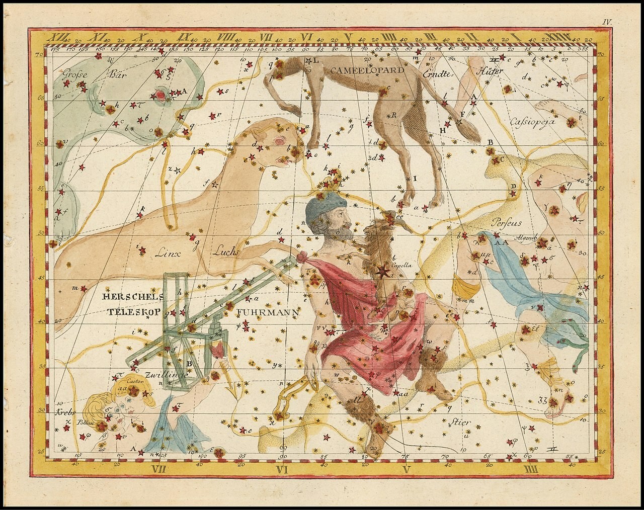 Érdekességképp megemlítendő, hogy a 18–19. századbeli csillagtérképeken a Hiúz alatt egy távcsövet figyelhetünk meg, a Telescopium Herscheliit, amit ma már nem érdemes keresni. Ez a csillagkép Hell Miksa, magyar származású csillagász révén került az égboltra. Először az 1790-ben Bécsben megjelent Ephemerides Astronomicae nevű almanachban szerepelt. Hell ezzel az Uránusz felfedezésének állított emléket. A kisméretű csillagképet azért a Hiúz és az Ikrek közötti égterületre helyezte, mert a felfedezés pillanatában az Uránusz ehhez közel, a Bikában tartózkodott.