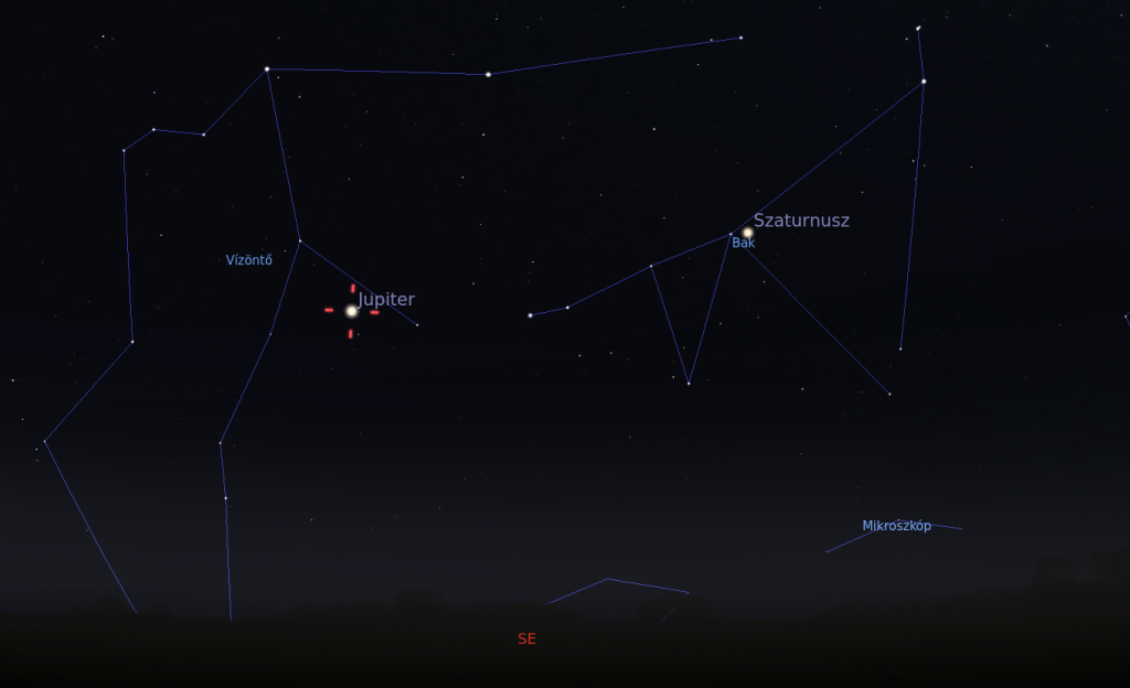 A Jupiter a fogyatkozás közepén 14 fok magasan lesz, a Vízöntő csillagképben. Ez eléggé alacsony helyzet, így a légkör mindenképp zavaró hatású lesz, de egyáltalán nem lehetetleníti még el a megfigyelést.