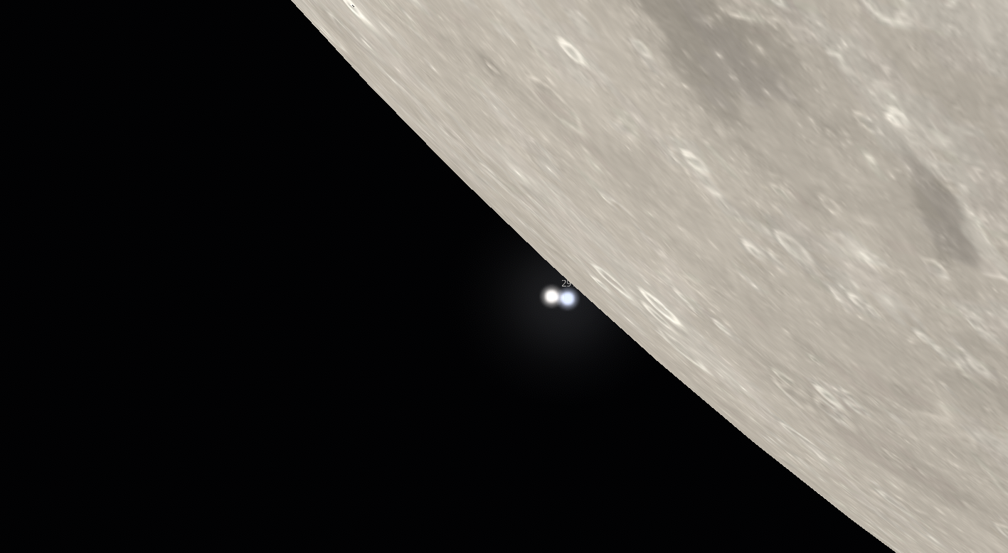Égi kísérőnk június 25-én a Vízöntő csillagképben jár majd. Keringése során pedig egyre jobban megközelíti majd a két csillagot, hajnalban pedig, 3:00-kor várhatóan bekövetkezik a kettős csillagfedés, amikor a Hold DNy-i oldala mindkét, fentebb említett csillagot eltakarja. És ha már valaki felkelt ilyen korán, mindenféleképp érdemes a 3:38-kor megfigyelhető kilépésig még ébren maradni, amikor a két csillag szenzációs látványt nyújtva, 6,4 másodperc különbséggel újra előtűnik majd a 81%-os fázisú Hold déli része mögül.