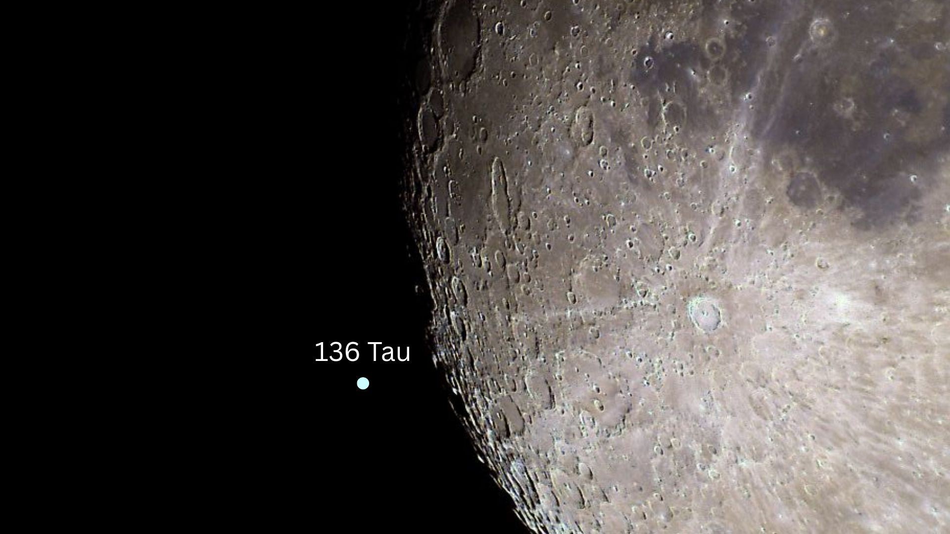 A HD 39004 kilépése után 35 perccel, 1:23-kor a Hold rendkívül közel kerül a 136 Tauri jelű csillaghoz. Az égitest egy kettőscsillag-rendszer, tehát két csillag kering egymás körül, nagyon közel egymáshoz. A csillagpár közel 400 fényévre van a Földtől, nevéből is adódóan a Bika (Taurus) csillagképben. Látszó fényessége 4,5 magnitúdó, ezért egy ideálisan sötét éjszakán szabad szemmel is észlelhető.