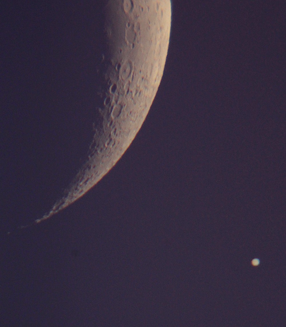 A Jupiter ekkor már túlhaladt maximális holdközelségén (8 ívperc távolságra), de még mindig igen impozáns látványt nyújtott a páros, bőven egy látómezőben látszottak.
