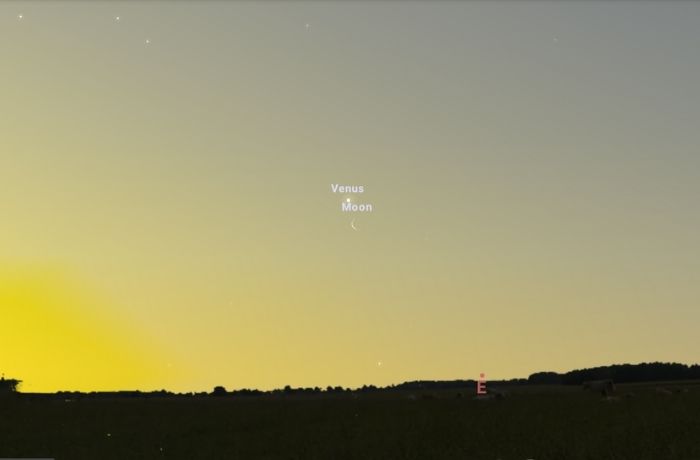 Május 27-én hajnalban a Vénusz (fényesége -4 magnitúdó, vagyis a Nap és Hold utáni legfényesebb objektum az égen) mindössze 1,1 fokra közelíti majd meg a 10,6%-os holdsarlót. Más szavakkal: a vékonyka holdsarlótól két holdátmérőnyire fog pózolni a szépséges Vénusz! Ha van olyan olvasónk, aki még soha életében nem látott saját szemével bolygót (és ez nem szégyellnivaló, mindent el kell kezdeni valamikor – a Svábhegyi Csillagvizsgáló egyik fő célja éppen ennek a kezdőlökésnek a megadása), most ne habozzon korán kelni és kimenni az ég alá, ilyen könnyen bolygóra lelni ugyanis nagyon ritkán lehet.