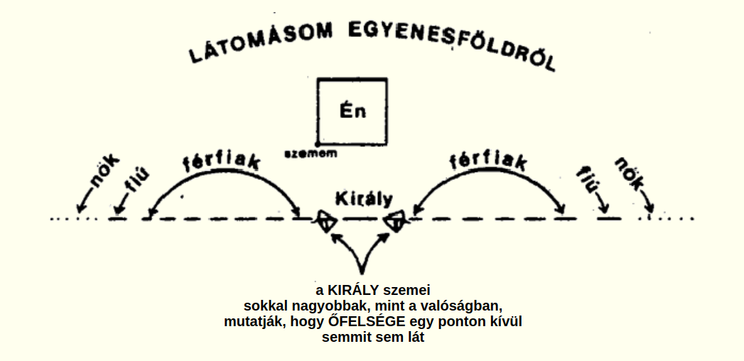 Főszereplő négyzetünk utazása egy látomással veszi kezdetét: ebben az álomban Egyenesföldre látogat, ami mindössze egy egyenesből áll. A világ közepén foglal helyet a király, mellette rövidebb egyenesek formájában a férfiak, legszélén pedig a nőket jelképező pontok. Mivel egy ilyen világban nem lehetséges az, hogy a benne élők helyet cseréljenek egymással, vagy mozgásuk során megkerüljék egymást, a kommunikáció, sőt a szaporodás fő eszköze is a hang. Négyzetünk beszédbe elegyedik Egyenesföld királyával, és megpróbálja elmagyarázni neki, hogy az ő életformájuk primitív, hiszen létezik egy másik dimenzió is, ahonnan ő származik. A király azonban hallani sem akar erről.