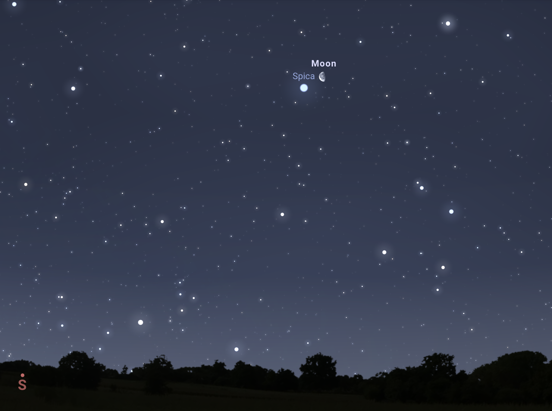 A páros nagyszerűen foglalja keretbe a februárt, hiszen elseje után 28-án újra egymás közelében lesznek láthatók a délkeleti égbolton. A Szűz Alfája, a 0,9 magnitúdós Spica 23:55-kor 4 fokkal keletre lesz látható a telihold után már „csak” 83%-os megvilágítottságú kísérőnktől.