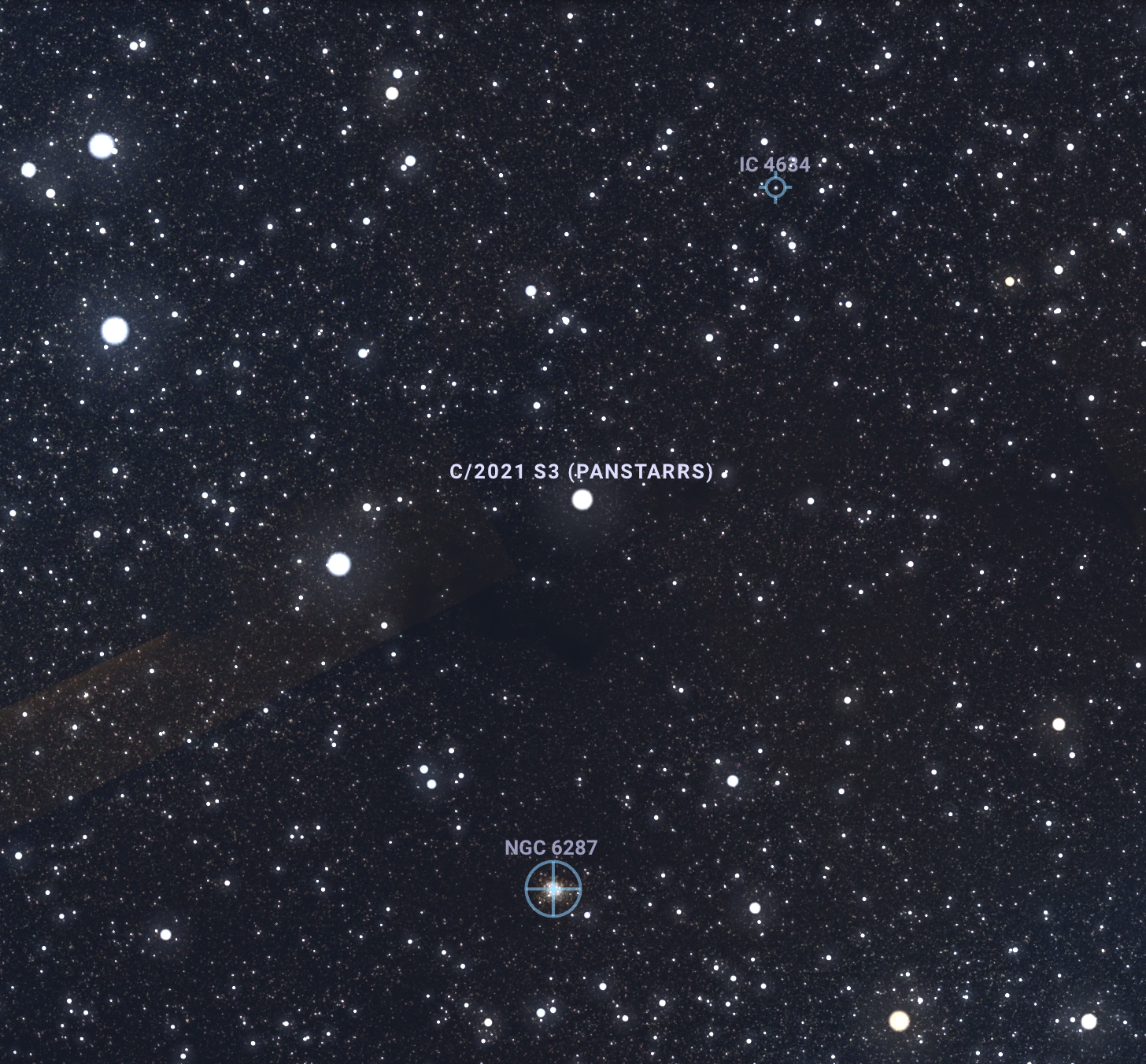 Február 8-án a C/2021 S3 (PANSTARRS) üstökös az IC 4634 planetáris köd és az NGC 6287 gömbhalmaz között