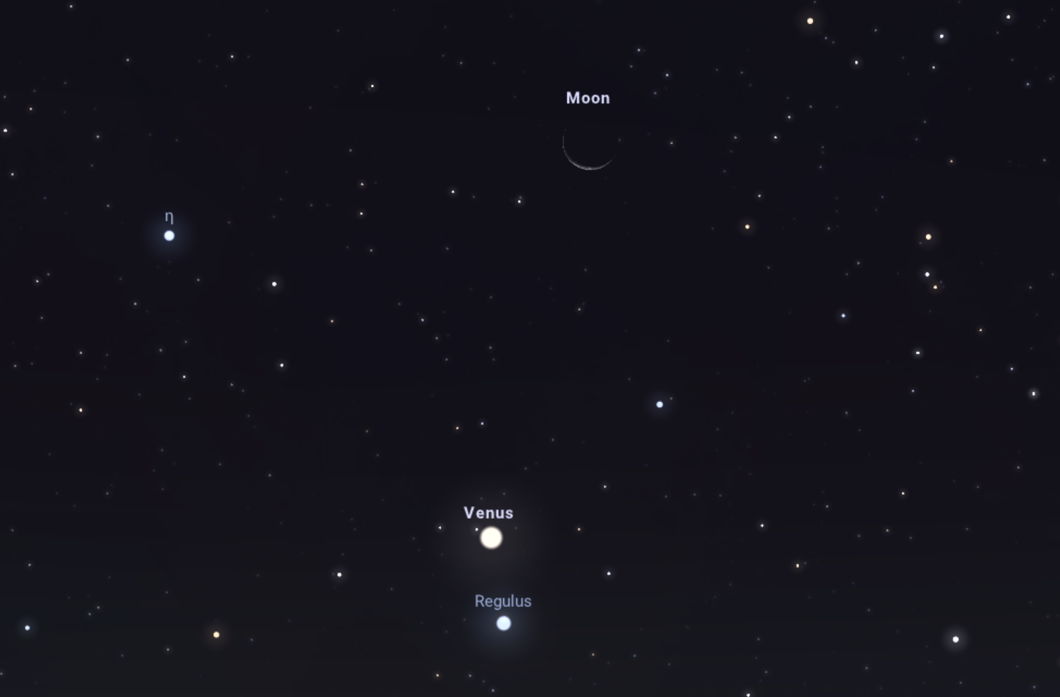 A Regulus egy kék színű, fényes csillag, az Oroszlán csillagkép alfája. A Vénusszal és a Holddal együtt gyönyörű kompozíciót alkot, akár egy telefon háttérképéhez is tökéletes fotó lehet. Egy nagyobb teleobjektívvel vagy kis méretű távcsővel nagyszerű képet lehet készíteni a jelenségről.