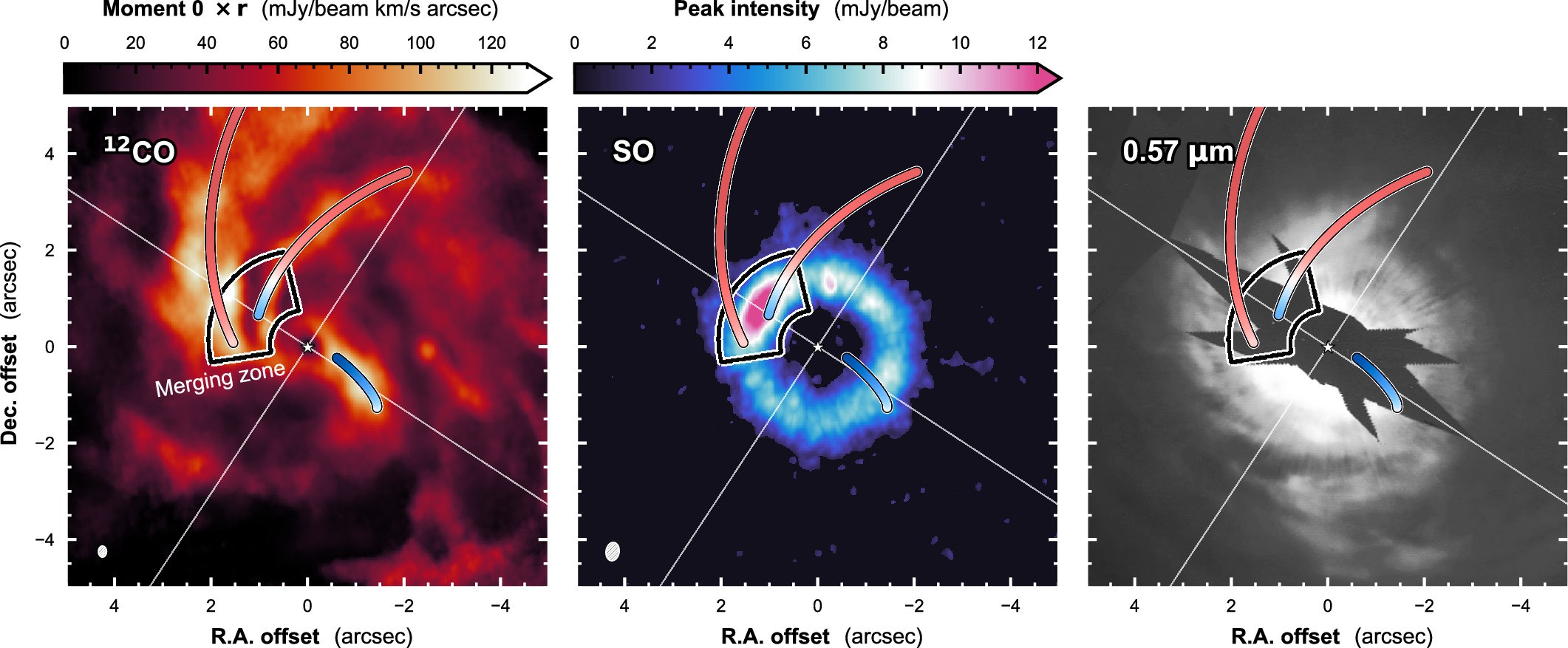 A kutatók modellezték a korong anyagának mozgásait, és sikerült elválasztaniuk a szabályosan forgó korong anyagát a behulló, korongon kívüli anyagtól. Ez utóbbi határozottan a korongba hulló anyagnak megfelelő mozgásokat mutat. Három különböző áramlatot azonosítottak, amelyek közül az S1 és az S2 jelű a korong előtt van, és távolodik tőlünk. Az S3 kisebb, a korong mögött helyezkedik el, és felénk mozog. Úgy tűnik, hogy az S1 és S2 egy „összeolvadási zónában” találkozik a koronggal, ahol az emissziójuk már nem különböztethető meg a korongétól. A kutatók szerint ez az összeolvadási zóna egybeesik azzal, ahol a bolygójelölteket azonosították. Ezek az eredmények alátámasztják a feltételezést, miszerint az AB Aurigae késői anyagbeáramlás áldozata.