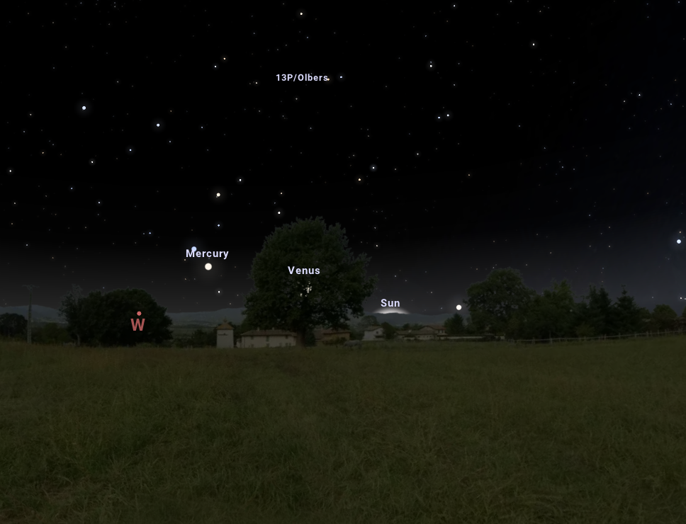Július 7-én este fél tízkor a Merkúr látványos együttállásba kerül a Hold vékony, dagadó sarlójával: attól 2,5 fokra balra lentebb lesz megtalálható. A páros ekkor is a Nap, illetve a nyugati horizont közelében tartózkodik majd, de aki szereti a kihívást, és érdeklődik az együttállások iránt, bátran próbálja meg az észlelést. A Hold vékony sarlójának távcsöves megfigyelése szintén érdekes élménynek bizonyulhat.
