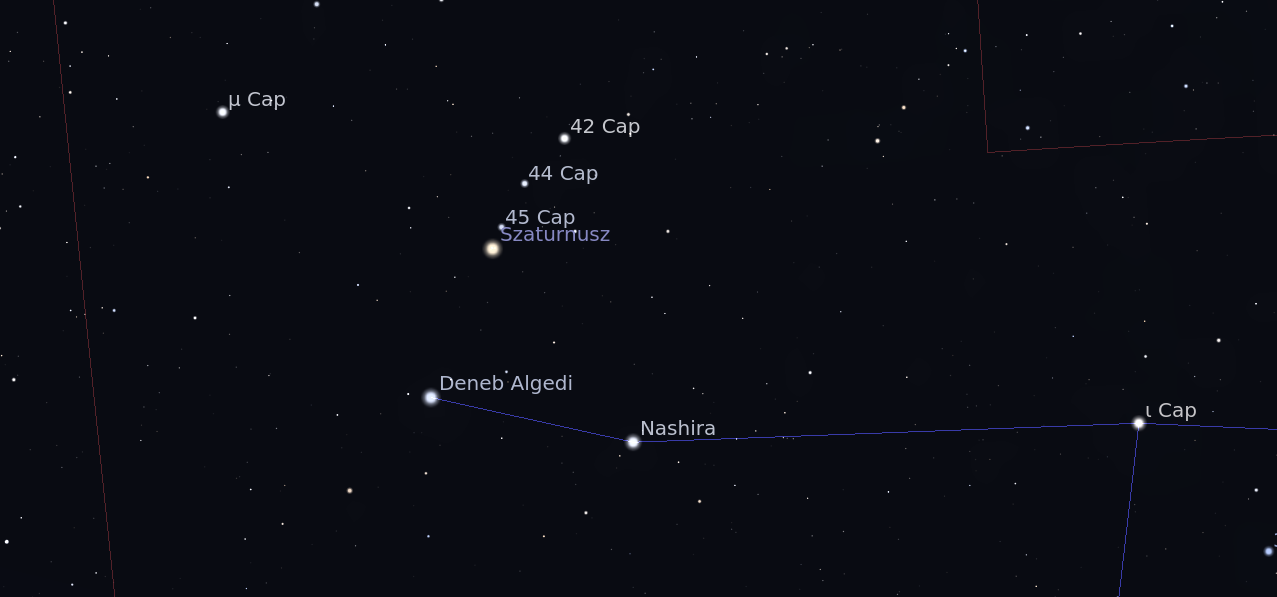 - A 45 Cap csillag 6,0 magnitúdós, ez alkot a Szaturnusszal szoros párost 21-én.