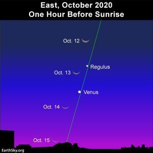 Pazar szabadszemes látványnak ígérkezik az október 13-i hajnal, ahogy a vékony, 18%-os Holdsarló tálkaként ragyog az égen kicsit több mint 3°-kal a Vénusz fölött.