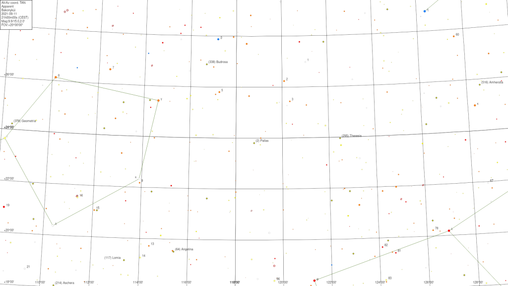 Szerencsésnek mondhatjuk magunkat, újhold után, és két nappal az első negyed előtt az épp lenyugvó Hold fénye sem fogja megnehezíteni a (2) Pallas észlelését.