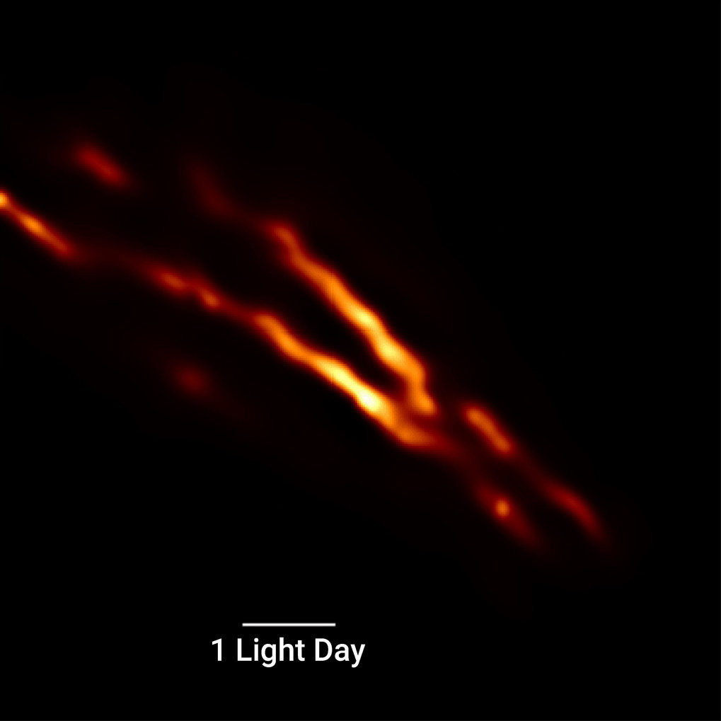 Most először sikerült egy aktív galaxismagból kiinduló plazmanyalábot 1 fénynapnál (kb. 26 milliárd km-nél) is jobb felbontással feltérképezni. Vagyis megfigyelhetővé vált, hogyan indulnak azok a részecskék, amelyek végső soron a hatalmas, messze a látható fényben megfigyelhető galaxison túlra nyúló rádiólebenyeket ,,fújják”.