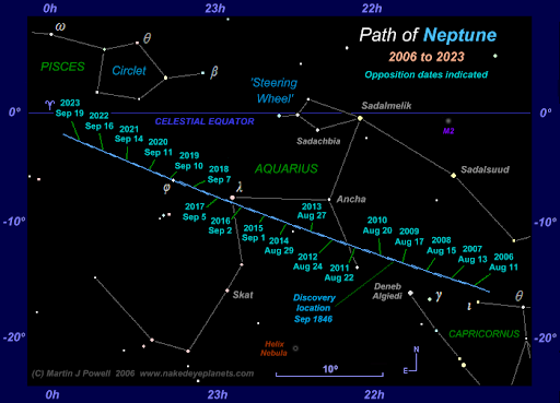 Ez azért lehet jó hír, mert így már nem kell éjfél utánig fenn maradni, ha valaki távcsövét a Neptunuszra szeretné fordítani, már sötétedéstől próbálkozhat a mutatvánnyal.