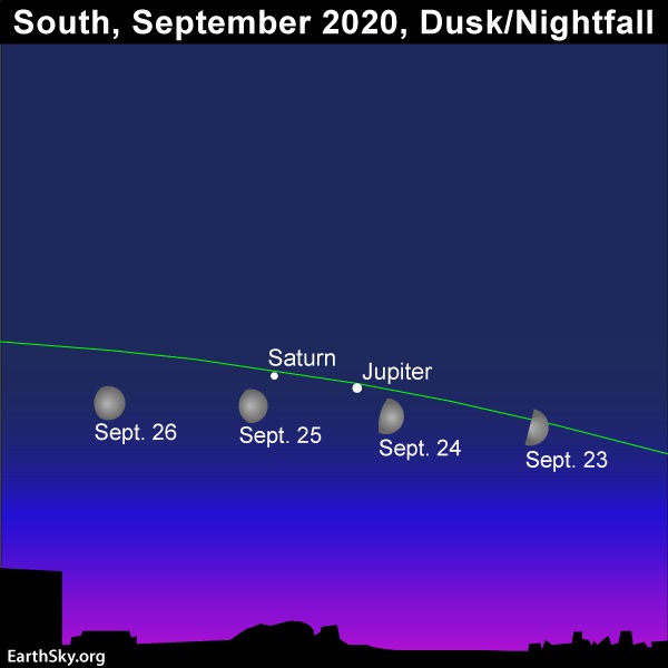 Már-már szokásos triónk újra összeáll egy estére, szeptember 25-én szép derékszögű háromszöget alkot majd a Jupiter, a Szaturnusz és a dagadó Hold.