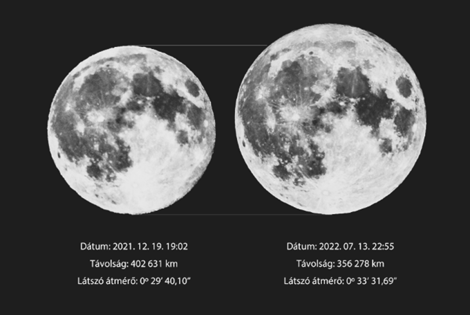 A novemberi jelenség idején a Hold 357 218 kilométerre lesz tőlünk – vagyis mintegy 27 ezer kilométerrel közelebb, mint átlagosan (a Föld és a Hold átlagos távolsága egymástól kb. 384 400 km). Ez a különbség a csillagászati mérésekben egyértelműen kimutatható: a Hold látszól mérete csupán 14 százalékkal nő meg.