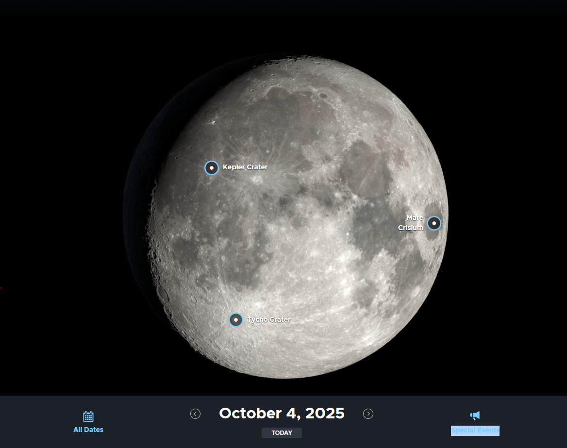 méghozzá október 4-én a nemzetközi észleld a Holdat est (International Observe the Moon Night) nevű, évente sorra kerülő eseményt, amelyet A NASA Goddard Űrrepülési Központjának Naprendszer-kutatási Osztálya, a Lunar Reconnaissance Orbiter misszió és más szervezetek, egyetemek, obszervatóriumok, iskolák, múzeumok, könyvtárak és amatőrcsillagászok rendeznek a Hold megfigyelésére.