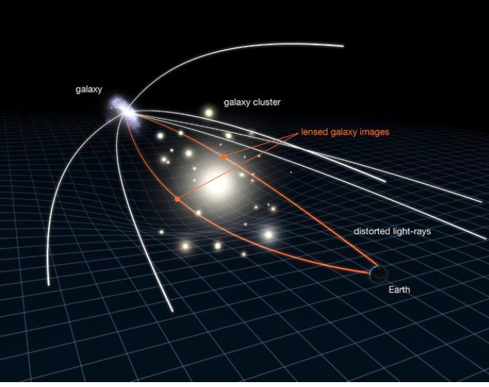 Az einsteini általános relativitáselmélet értelmében azok a testek, amelyek tömeggel rendelkeznek, meghajlítják a téridő lepedőhöz hasonlítható szövetét. Ennek eredményeként válik lehetségessé a gravitációs lencsézés jelensége is. A gravitációs lencsézés során egy nagy tömegű lencséző objektum meghajlítja a téridő szövetét, és így képes többszörös képet alkotni egy távolabbi, lencsézett forrásról, amelynek fénye többféle úton halad el a lencséző objektum mellett. Így különleges alakzatok, például Einstein-keresztek, Einstein-cikcakkok, avagy Einstein-gyűrűk jöhetnek létre.