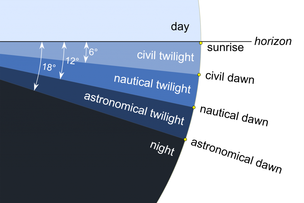Röviden vesszünk bele mi is a félhomályba, és ismerkedjünk meg (most elsősorban a hajnali) szürkület jelenségével és fázisaival. A szürkület a nappal és az éjszaka közötti átmenet.