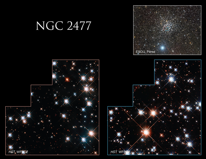 - NGC 2477 (Caldwell 71): nyílthalmaz, amely feltűnően gömb alakú, ezért könnyen összetéveszthető egy gömbhalmazzal. A Földtől mintegy 4000 fényévre található. Binokulárral már jól látszik. Legjobban a déli féltekén az ottani nyáron, valamint az északi féltekén alacsonyabb szélességi fokon télen figyelhető meg. Körülbelül 300 csillagot tartalmaz.