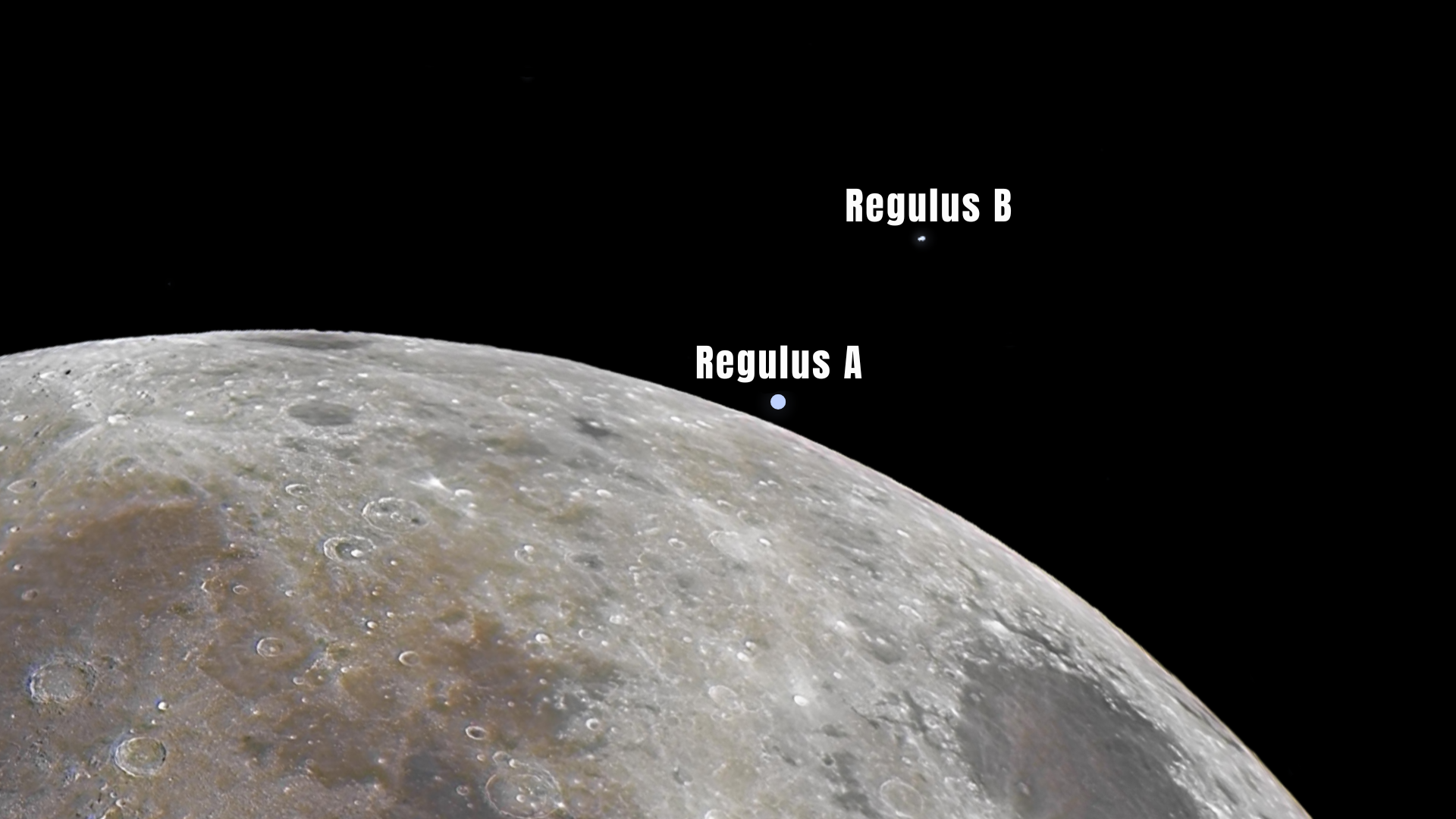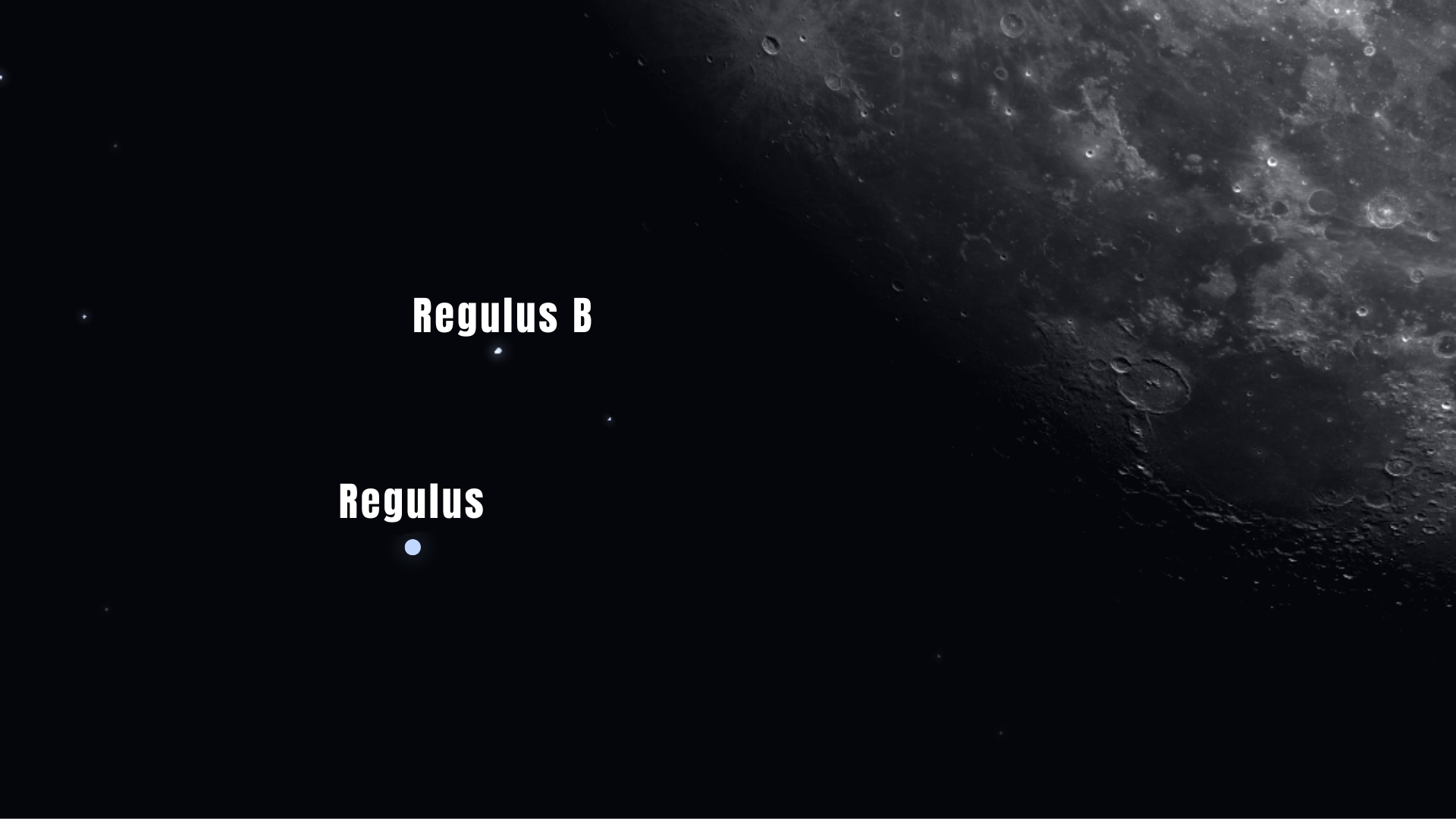 Holdunk gyakran együtt áll az állatövi csillagképek legfényesebb tagjaival, de néha teljesen beférkőzik eléjük, kitakarva azokat. Ez történik most a Regulusszal is. Március 29-én este 20:28-tól eltakarja a csillagrendszert, amelynek első elfedett tagja a Regulus B lesz. A 8,2 magnitúdós csillag a 88%-ban megvilágított Hold sötét (bal) oldalán lép be mögé. Ez pontosan 20:28-kor lesz, amikor egy nagy teljesítményű távcsőben úgy fog tűnni, mintha a Holdhoz közelítő csillag a semmiből eltűnne. Ekkor a Hold a délkeleti látóhatár fölött 47°-kal lesz látható.