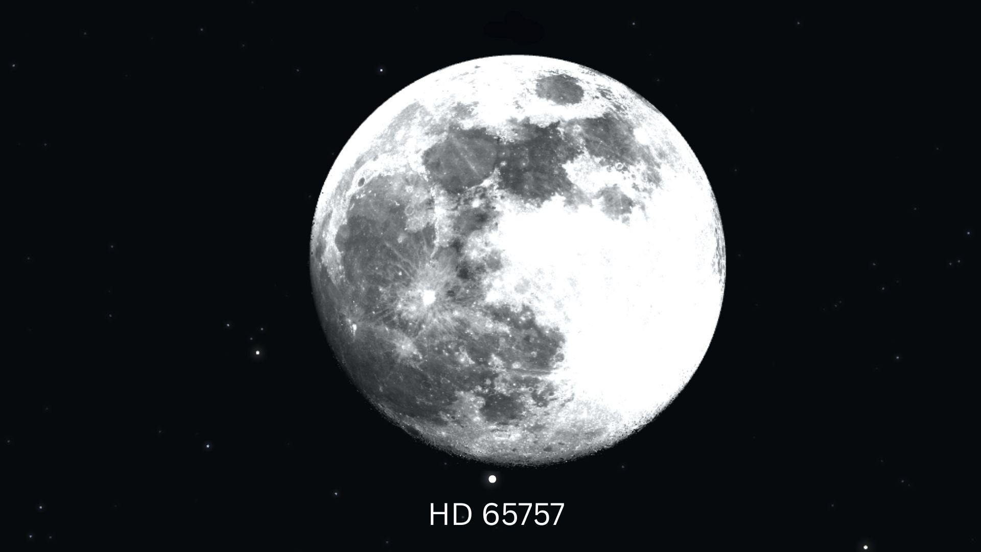 Január legutolsó estéjén égi kísérőnk felénk néző arcának szinte egésze, 98%-a lesz megvilágítva. (A telihold február 1-én, 23:09-kor lesz). A ragyogóan fényes égitest egy nála sokkal halványabb, szabad szemmel még sötét égen is nagy kihívás árán észlelhető csillagot fog eltakarni, a HD 65757-et. A csillag 6,1 magnitúdós látszó fényességű, így távcsőben nagyobb nagyítással látható, még a telihold mellett is.