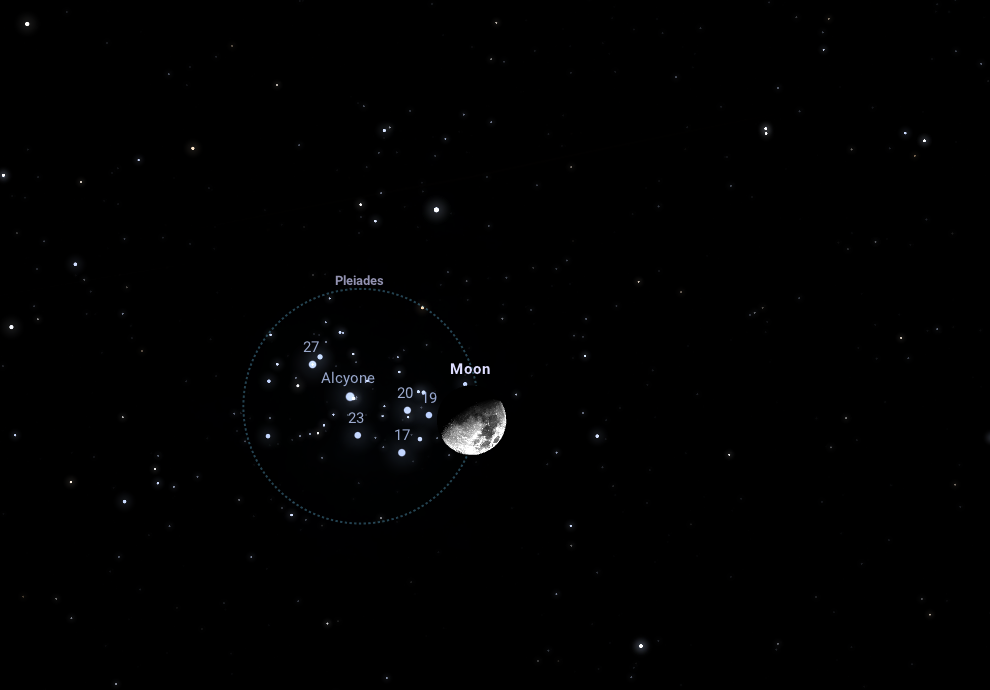 január 27.: a Fiastyúk és a Hold szoros együttállása halmazszéli csillagfedésekkel