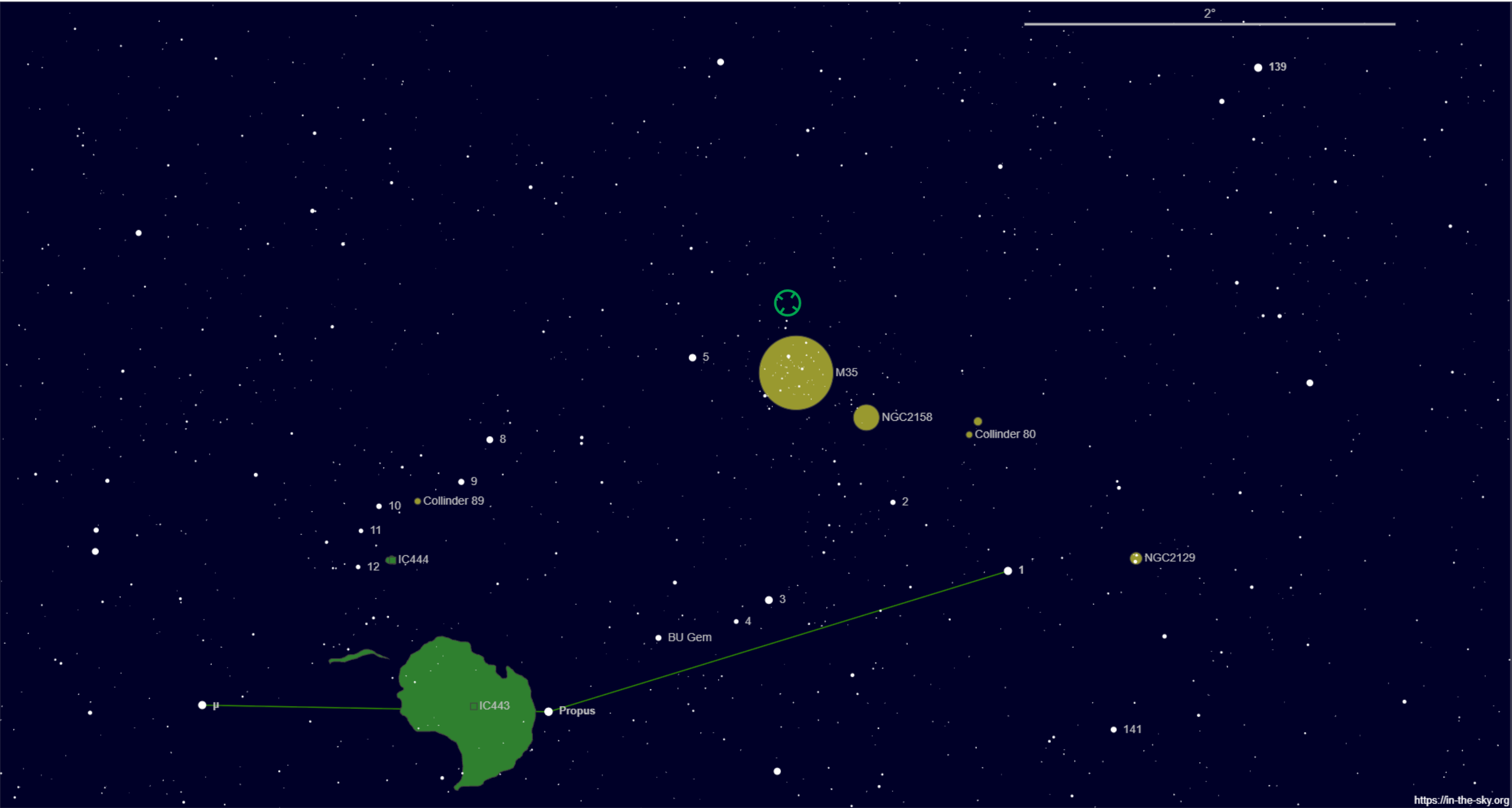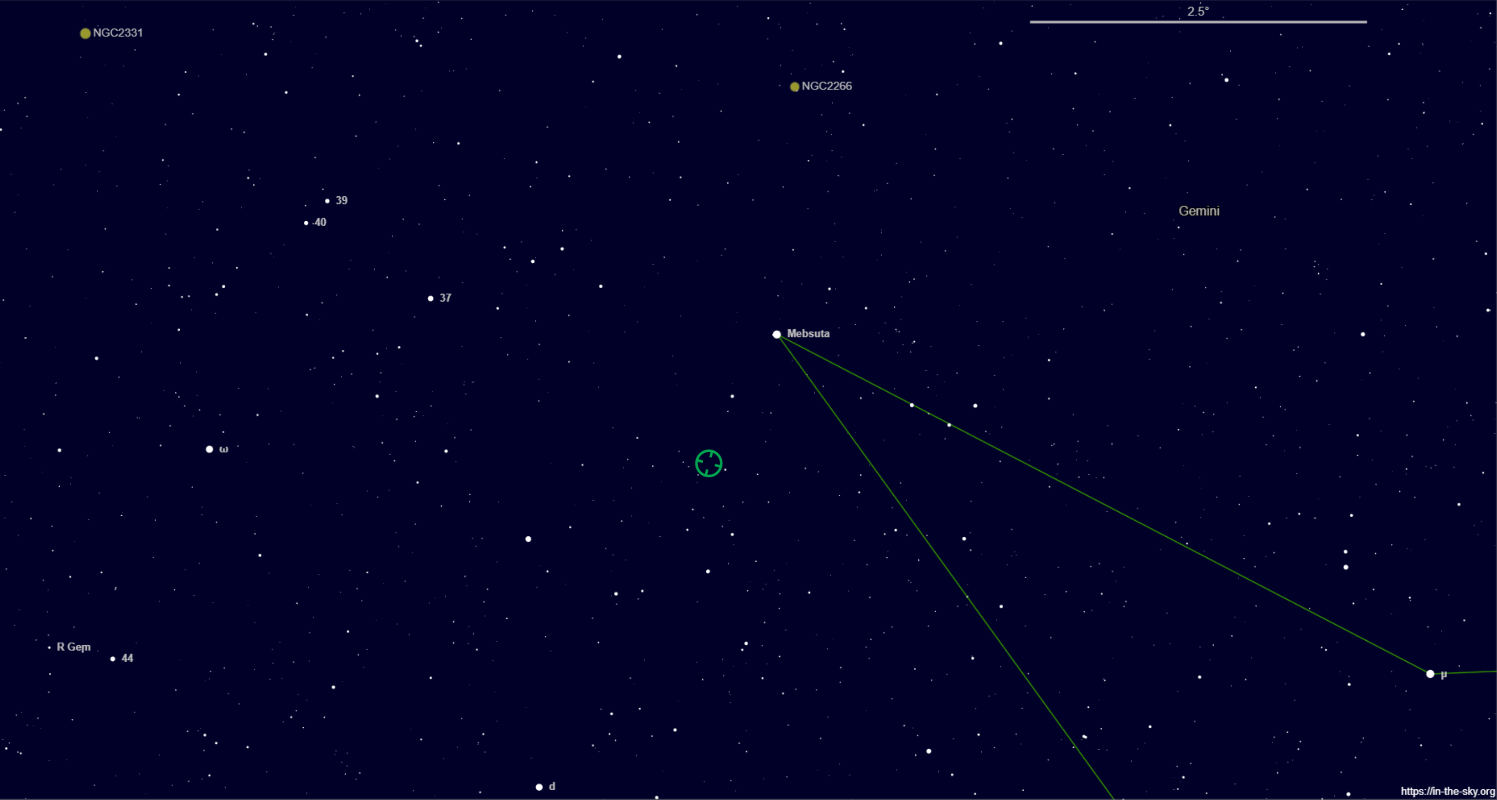 December 15-én is egy látványos égi jelenség figyelhető majd meg: a (10) Hygiea kisbolygó (10,6 magnitúdó fényességű) mindössze 34 ívpercre halad el az M35 nyílthalmaz mellett éjfél után 24 perccel. A C-típusú (szénalapú) 10 Hygiea a főövbeli kisbolygók egyik legnagyobb tagja, átmérője 430–450 km körüli. Az M35 (Messier 35) kiterjedt, kb. fél fokos nyílthalmaz az Ikrek csillagképben, több száz csillaggal. Holdfénymentes, sötét éjszakákon szabad szemmel halványan sejlő foltként látható. Bő csillagmezője kiváló összehasonlítási alapot ad a Hygiea elmozdulásának követéséhez. A halmaz csillagaihoz képest a Hygiea napi helyzetváltozása feltűnően látszik, különösen hosszú expozíciós idejű fényképen, amelyen a csillagok pontszerűek, a kisbolygó pedig apró csíkként jelenik meg.