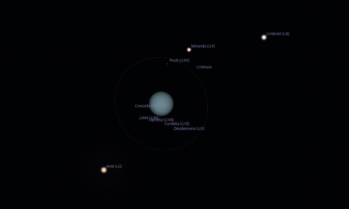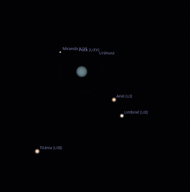December 17-én kora este ritka és vizuálisan is rendkívül érdekes konfiguráció bontakozik ki az Uránusz környezetében. A bolygó két nagyobb holdja, a Titania és az Ariel, amelyek jellemzően íves, tisztán követhető pályát rajzolnak a bolygó köré, ezen az estén szokatlan szereplőket kapnak társul: két nagyon halvány csillag (11,9 és 12,4 magnitúdós) pontosan a két hold látszó helyzete közé kerül. A látvány azért is lesz meglepő és lenyűgöző, mert a 12 magnitúdós csillagok ámbár fényesebbek az Uránusz összes holdjánál, most beleolvadnak a holdak sorába, és könnyű összekeverni azokat, ha az észlelő nincs felvértezve friss térképpel. Ez a hatás egy kisméretű „minihalmazt” eredményez a bolygó közelében. A jelenség 17:15 körül lesz a leglátványosabb, amikor az Uránusz 30° magasan áll az égen. Ez a magasság már kellően nagy ahhoz, hogy a légköri torzítás minimális legyen, így a holdak és a két halvány csillag biztonsággal megfigyelhetők, de ehhez mindenképpen nagy távcső szükséges, a kisebb műszerekkel csak az „álholdak” látszanak. Az észlelés igazán izgalmassá 35–40 cm feletti távcsőátmérővel válik, ekkor ugyanis a holdak és a csillagok különbségei tisztán kirajzolódnak.