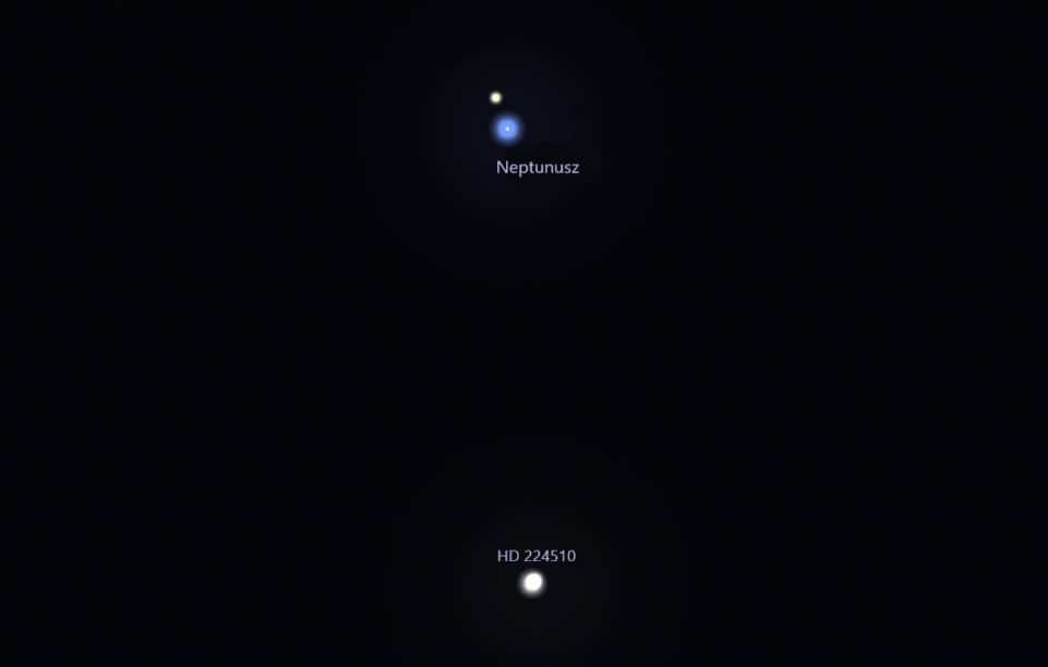 December 9-én különleges égi együttállás figyelhető meg 18 órakor: a Neptunusz mindössze 3,5 ívperces távolságra kerül a HD 224510 jelű, 9,1 magnitúdós csillagtól. A jelenség azért különleges, mert nem csupán egy rövid idejű együttállásról van szó – a Neptunusz mozgása miatt több mint két héten át (december 1. és 15. között) 4 ívperces távolságon belül maradnak. Ez a hosszú időtartamú „szoros kísérés” ritka alkalmat teremt a Neptunusz pontos követésére és a bolygómozgás vizuális tanulmányozására. A Neptunusz lassú égi mozgása miatt évente egyszer átesik egy látszó irányváltáson, amikor a retrográd mozgásból visszavált előrehaladó mozgásba. Ez az időszak azt jelenti, hogy a Neptunusz szinte „megtorpan” az égbolton, látszólag alig változtatja a helyzetét és emiatt hosszú napokon át ugyanazon csillagok közelében marad. A HD 224510 csillag éppen a Neptunusz e lassú fordulási ívének közelében helyezkedik el, ezért a bolygó két héten át a csillag közvetlen közelében látszik.