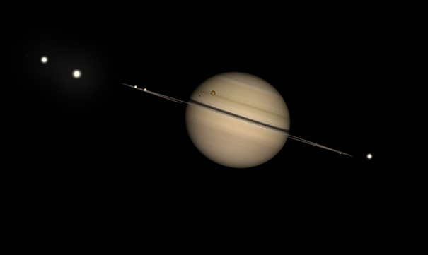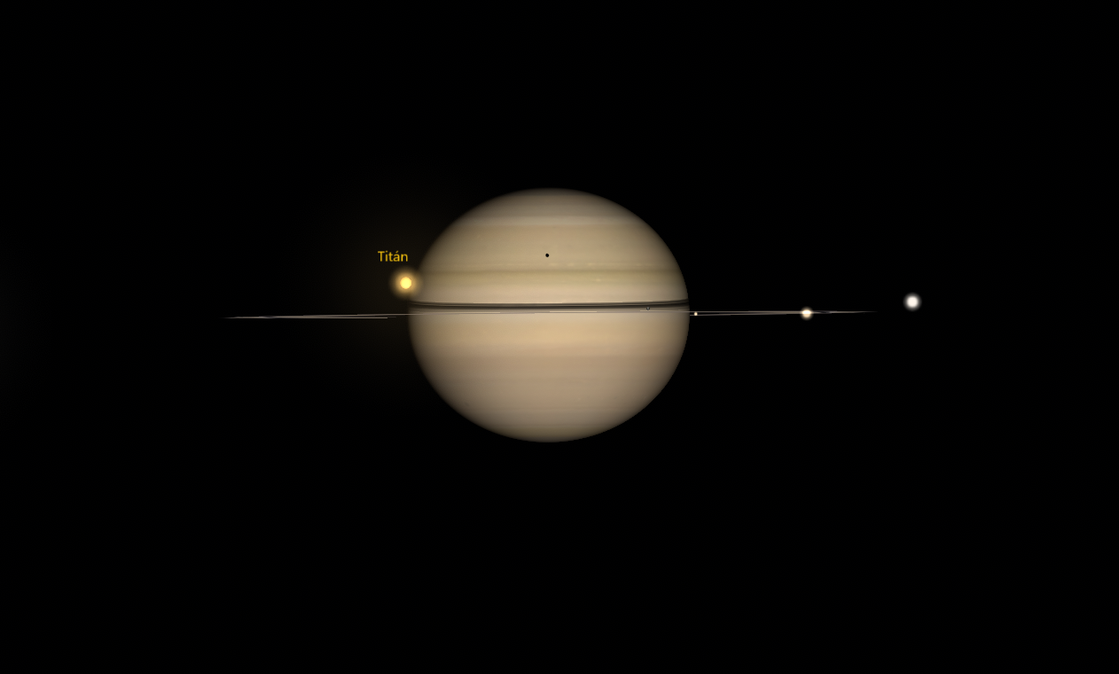 Karácsony estéjén, december 24-én este ismét egy látványos és tudományos szempontból is különleges égi eseményt figyelhetünk meg, amelynek szereplői a már jól ismert Szaturnusz és a Titan. A bolygó legnagyobb holdja, a Titan, átvonul a bolygó korongja előtt, miközben a kisebb, de még a fényesebb holdak közé tartozó Tethys és árnyéka is követhető a pályáján. A Titan átvonulása a Szaturnusz előtt 24-én 17:58-kor kezdődik, amikor a hold elsőként érinti a bolygó peremét, 38°-os magasságban, ami lehetővé teszi a légköri torzítás minimális hatásával történő részletes vizuális megfigyelést. 18:15-re a Titan teljes korongja már a Szaturnusz előtt halad, ekkor a hold a bolygó korongja előtt bár nehezen, de megfigyelhető a gyűrű árnyéka felett. A centrálmeridiánon (a bolygó két pólusát összekötő vonalon) 20:58-kor bekövetkező átmenet idején a Titan korongja a Szaturnusz korongjának közepén helyezkezik el, azonban a kilépés már nem követhető, mivel közben a látóhatár alá nyugszik a bolygó, . A Tethys és árnyéka a Titan és a Szaturnusz korongja előtt különleges dinamika szerint halad majd. 18:16–18:18 között a Tethys hold a Szaturnusz korongja elé lép, akárcsak korábban a Titan. Ezután 18:58–19:00 között a Thetys sötét árnyéka a Titan és a bolygóperem között tűnik fel, majd később nem túl feltűnően fekete foltként elhalad a bolygó világos korongja előtt. Különösen látványos pillanat lesz 19:42-kor, amikor a Tethys árnyéka pontosan a Titan korongja alá vetül. 19:46-kor a Tethys korongja áthalad a gyűrű alatt, valamint ekkor lesz halad át a bolykorong középvonalán. 20:18-kor a Thetys árnyéka halad át a Szaturnusz középvonalán. A Tethys korongja a gyűrű hátsó részén, a bolygókorong elől lép ki 21:14–21:16 között, míg az árnyéka 21:50-kor, alacsony, 12°-os magasság mellett hagyja el a bolygó korongját. Ekkor a légköri nyugtalanág miatt várhatóan alig megfigyelhető vagy fotózható a látvány.