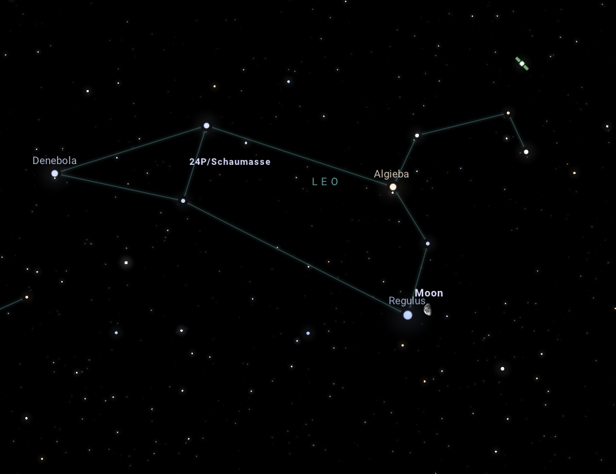 a csillagos égbolt ugyanis szabad szemmel is megfigyelhető együttállással nyitja a napot, majd később a nappali égen is megfigyelhető csillagfedéssel koronázza azt. Az Oroszlán csillagképben járó Hold reggel 6 órakor együttállásba kerül a csillagkép legfényesebb csillagaként ismert Regulussal, majd később, amikor már a Nap is felkelt, égi kísérőnk elfedi a Regulust! A fedés 8:52 és 9:36 között fog tartani majd, így érdemes résen lenni ebben az időszakban, különösen a belépés, illetve a kilépés idején. Bár a Regulus az éjszakai égbolton fényes, szabad szemmel is látható csillagként jelenik meg, a fedés megfigyeléséhez, mivel nappal történik, mindenképpen távcső használata javasolt.