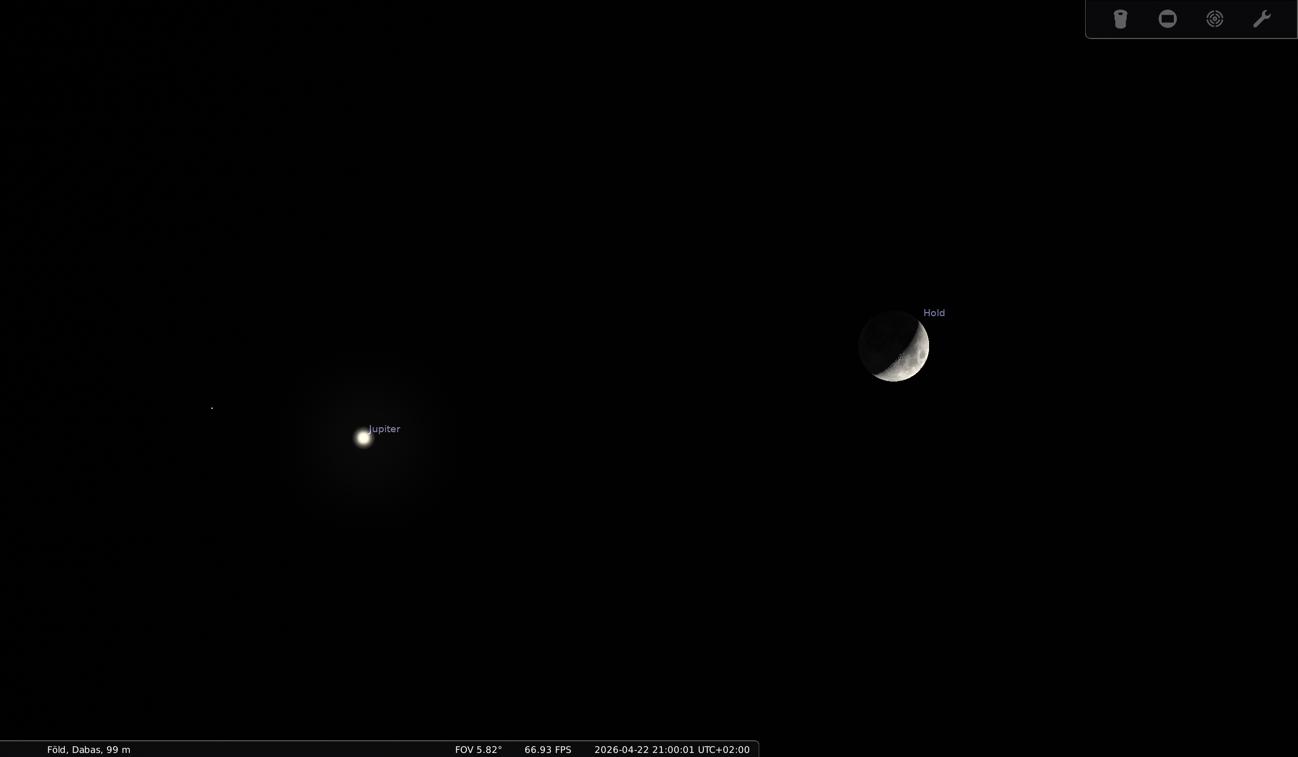 Információk a jelenségről: A Jupiter már hónapok óta az Ikrek csillagkép területén látszik, és a Hold is minden hónapban áthalad ezen a csillagképen. Az Ikrek kora tavasszal már egyre inkább csak az esti égen figyelhető meg, a benne tartózkodó Hold most körülbelül 35%-os megvilágítottságú lesz. Április 22-én este égi kísérőnk a csillagkép közepén lesz látható, mintegy 47 fokkal a horizont felett, így könnyen megtalálhatjuk. Tőle balra, nagyjából 4 fok távolságra a fényes Jupiter ragyog majd. Felettük az „álló téglalap” bal felső részén a Pollux és jobbra tőle a Castor, az Ikrek két legfényesebb csillaga látszik. Ez a téglalap négy csúcsát kijelölő elrendeződés egészen a Hold lenyugvásáig megfigyelhető marad, azonban a Hold a Föld körüli keringése miatt idővel egyre közelebb kerül a Jupiterhez, így a téglalap alakja fokozatosan torzul. A legjobb megfigyelési lehetőség 21 óra után adódik, ekkor érdemes keresni a látványos égi „téglalapot” magasan az égen. Mivel kiterjedt együttállásról van szó, megfigyeléséhez nincs szükség sem távcsőre, sem binokulárra, szabad szemmel lesz a legszebb.