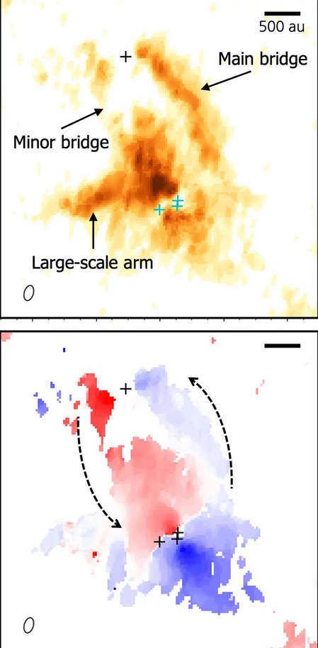 Amikor két fiatal csillag elhalad egymás mellett, magukhoz vonzhatják a még mindig körülöttük lévő port és gázt, amit úgy húznak magukkal, hogy íves karokat alkotnak belőlük. Ezek a képződmények néhány ezer év alatt eloszlanak, így kicsi az esély arra, hogy az őket létrehozó közelítéseket észleljük. Ráadásul sok rendszer esetében „nehéz megmondani, hogy a híd anyaga kölcsönhatásból származik-e vagy egyszerűen része volt az eredeti felhőnek” – mondja Leslie Looney (University of Illinois).