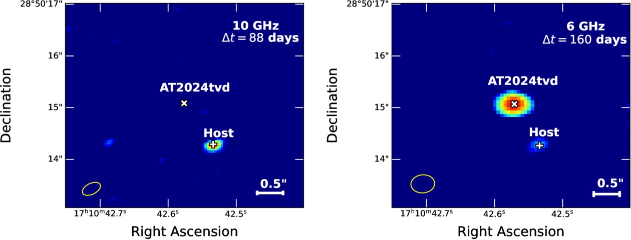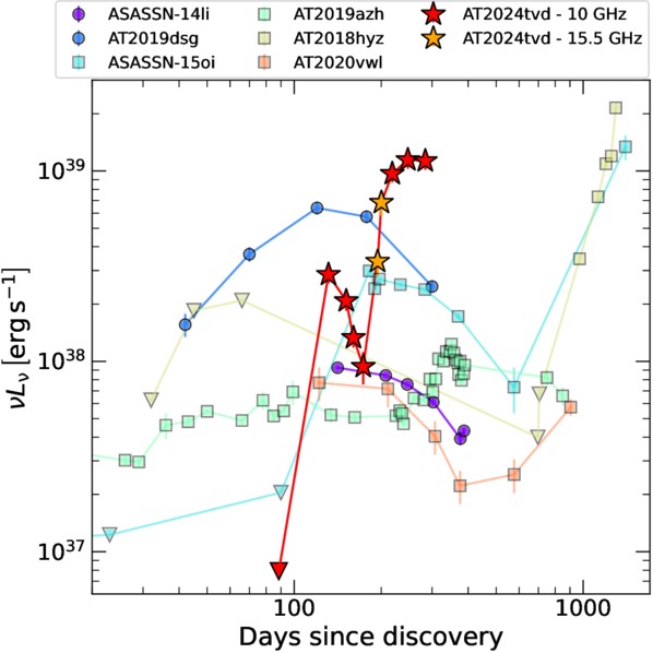 Régebb óta ismert, hogy az árapály-katasztrófák közel felében erős rádiósugárzást is láthatunk, valamelyest később, mint a látható tartományon. Az AT 2024tvd azonban még emellett is különlegesnek számít: minden eddig vizsgált árapály-katasztrófánál gyorsabban következik be a rádiótartományon vett felfényesedés, és emellett a második csúcs fényesebb az elsőnél, ami szintén ritka.