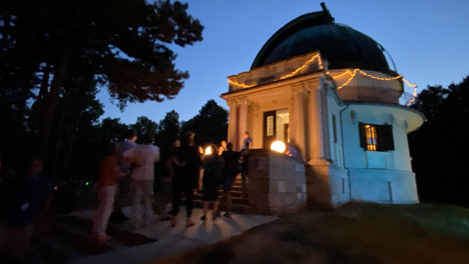 A csillagászati intézet ősfás parkjában sétálva megelevenedik a csillagászok romantikus élete és a legújabb kutatások eredményei.