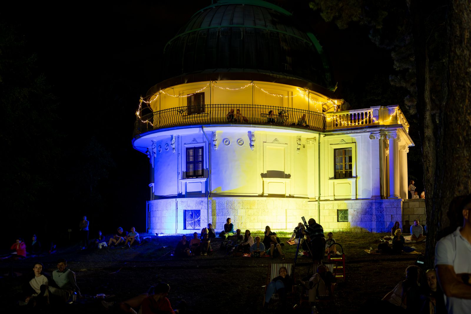 A csillagászati intézet ősfás parkjában sétálva megelevenedik a csillagászok romantikus élete és a legújabb kutatások eredményei.